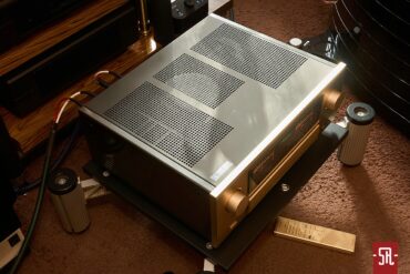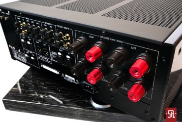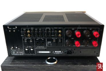 Jak można się było domyślić dostępne z poziomu płyty frontowej bogactwo opcji ma swoją kontynuację na plecach 700-ki, gdzie oprócz okupujących prawą parcelę akceptujących zarówno dowolną konfekcję, jak i gołe przewody podwójnych masywnych terminali głośnikowych pyszni się godny zaawansowanego procesora kina domowego istna bateria wszelakiej maści przyłączy. I tak, patrząc od lewej mamy dwa sloty na ww. karty rozszerzeń, sekcję pięciu par wejść liniowych RCA, pętlę magnetofonową, we/wyjścia na końcówkę i z sekcji przedwzmacniacza a piętro niżej dwie pary wejść XLR i oraz tym razem już w postaci XLRów zdublowane we/wyjścia z/na pre/końcówkę. Listę zamyka klasyczne gniazdo zasilające IEC. Wzmacniacz wyposażono w firmowe antywibracyjne nóżki wykonane ze stali wysokowęglowej. W zestawie nie zabrakło eleganckiego, oczywiście szampańsko złotego pilota utrzymanego w dopasowanym do jednostki głównej stylu vintage.