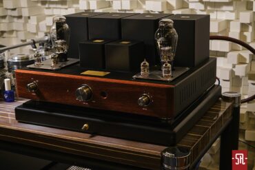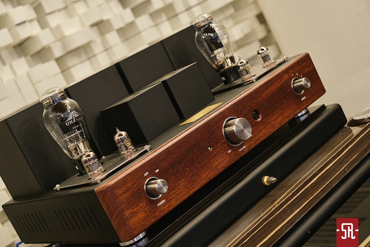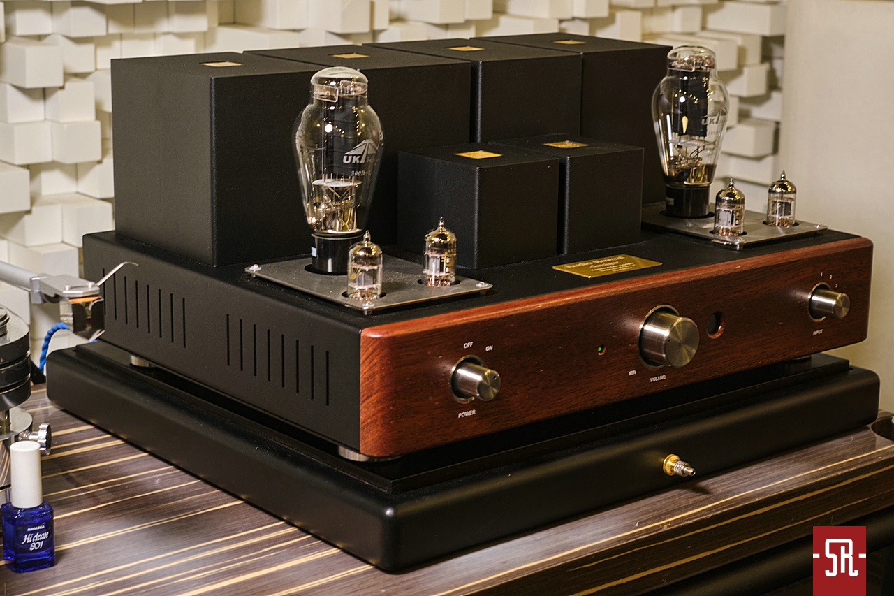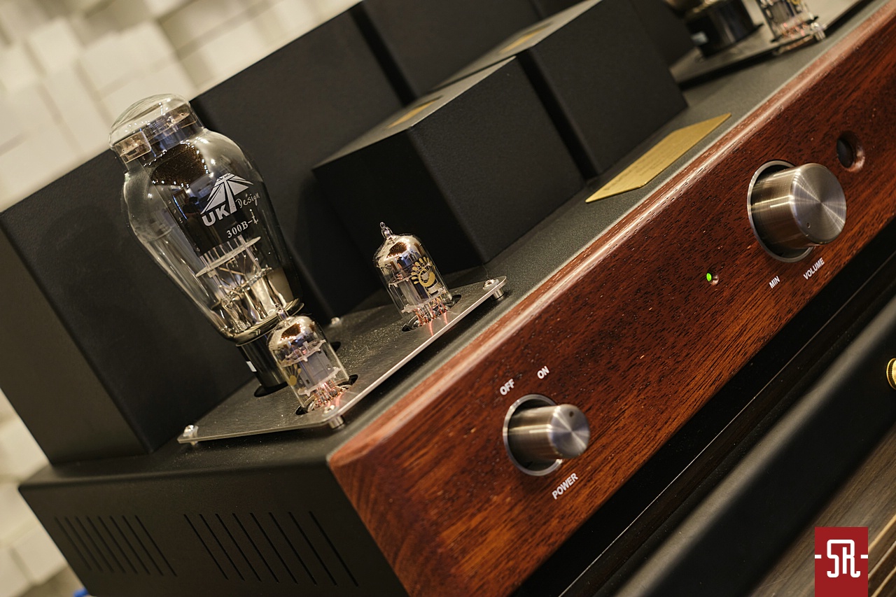 Skoro to premiera wypadałoby chociaż kilka zdań o gościu honorowym, czyli Audio Reveal-u Classique skreślić, co też niniejszym czynię. Nie da się jednak ukryć, iż Michał (Posiewka) pozostając wiernym dotychczasowemu i zarazem świetnie rozpoznawalnemu designowi udowodnił, że jeśli projekt jest przemyślany pod względem funkcjonalnym i w dodatku „zaskoczy” w świadomości odbiorców, to trzeba się go trzymać i jedynie dyskretnie akomodować do potrzeb konkretnych urządzeń. I tak też jest tym razem, gdyż Classique nie wyprze się swojego rodzeństwa. Mamy zatem do czynienia z drewnianym (Merbau) frontem i lakierowanym masywnym korpusem, na którego przedniej platformie pyszni się klasyczny zestaw lamp, czyli po parze pracujących w sekcji preampu triod 12AT7 i 12AU7 oraz górujące nad nimi, 300B w stopniu wyjściowym. Jeśli chodzi o bardziej zaawansowane technikalia, to Classique jest konstrukcją dual mono, z osobnymi sekcjami zasilania oraz transformatorami sieciowymi do obu kanałów i dysponuje całkiem przyzwoitą mocą 8W przy 4 i 8 Ω obciążeniu.