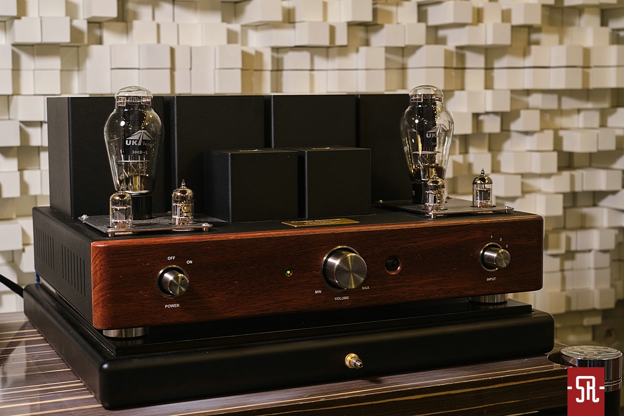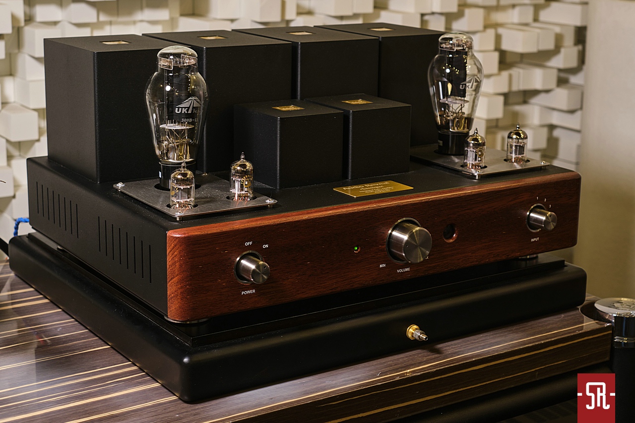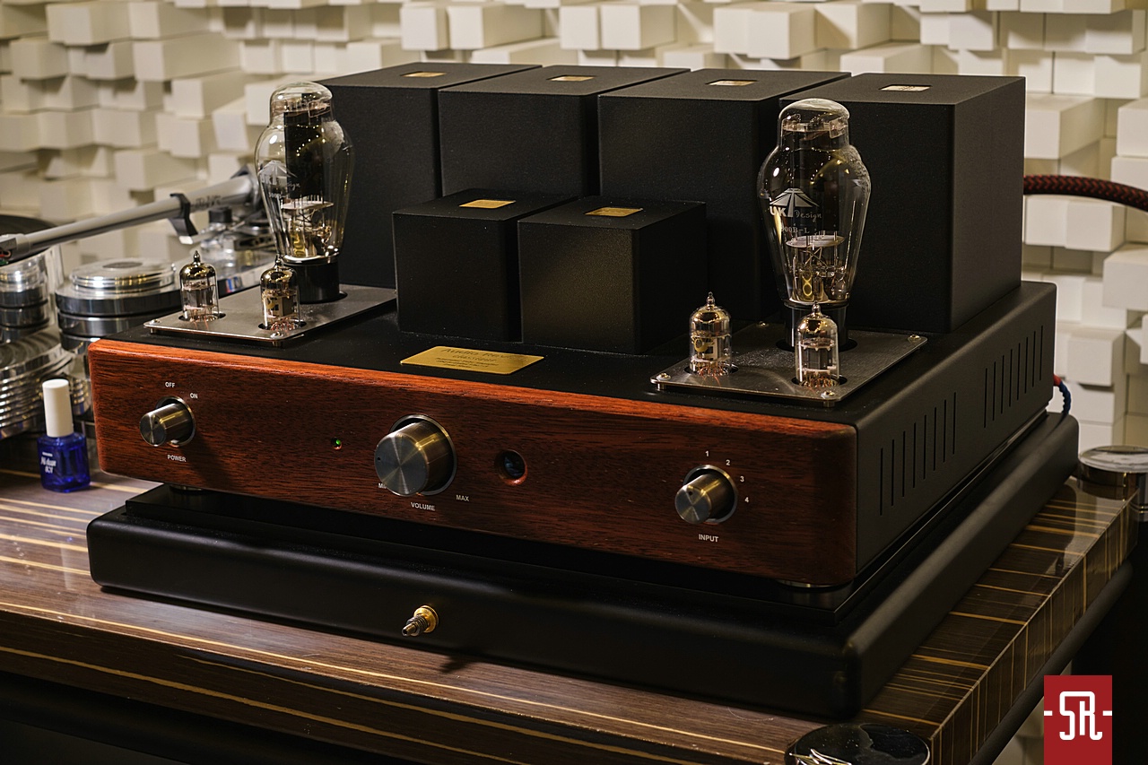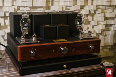Skoro to premiera wypadałoby chociaż kilka zdań o gościu honorowym, czyli Audio Reveal-u Classique skreślić, co też niniejszym czynię. Nie da się jednak ukryć, iż Michał (Posiewka) pozostając wiernym dotychczasowemu i zarazem świetnie rozpoznawalnemu designowi udowodnił, że jeśli projekt jest przemyślany pod względem funkcjonalnym i w dodatku „zaskoczy” w świadomości odbiorców, to trzeba się go trzymać i jedynie dyskretnie akomodować do potrzeb konkretnych urządzeń. I tak też jest tym razem, gdyż Classique nie wyprze się swojego rodzeństwa. Mamy zatem do czynienia z drewnianym (Merbau) frontem i lakierowanym masywnym korpusem, na którego przedniej platformie pyszni się klasyczny zestaw lamp, czyli po parze pracujących w sekcji preampu triod 12AT7 i 12AU7 oraz górujące nad nimi, 300B w stopniu wyjściowym. Jeśli chodzi o bardziej zaawansowane technikalia, to Classique jest konstrukcją dual mono, z osobnymi sekcjami zasilania oraz transformatorami sieciowymi do obu kanałów i dysponuje całkiem przyzwoitą mocą 8W przy 4 i 8 Ω obciążeniu.