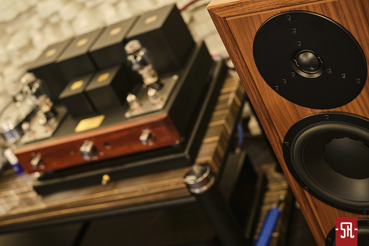 Jak widać na powyższych zdjęciach tytułowa integra wygodnie rozsiadła się w mniejszym z dwóch pomieszczeń odsłuchowych jakimi warszawski, zlokalizowany na ul. Kolejowej 45, salon dysponuje a podczas mojej bytności towarzyszyły jej „niemy” gramofon Transotora i czynnie dbający o odpowiedni podkład muzyczny streamer Ayon S-10. Z racji niezbyt imponującej kubatury gospodarze nie próbowali naginać praw fizyki i zdroworozsądkowo sięgnęli po łapiące za oko „oldchoolową” estetyką zgrabne podłogówki Dynaudio Contour Legacy. Co do wykorzystanego okablowania, to też nikt nie próbował żadnych karkołomnych eksperymentów spinając wszystko kombinacją Acrolinków i Siltechów.