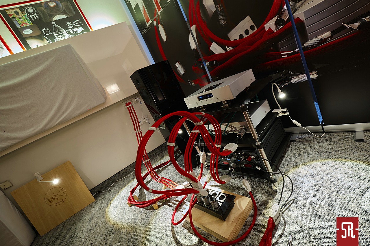 Niniejszy odcinek pozwolę sobie rozpocząć od pokoju WK Audio, w którym może nie było najgłośniej, lecz o nim było najgłośniej, bowiem nie wiedzieć czemu widok wystawionych na forum publicum, na pierwszym planie przewodów z serii TheRed co poniektórym, przejawiającym bliżej nieokreślone stany lękowe, jednostkom mówiąc potocznie „wysadził korki”. Jakaś ta dzisiejsza młodzież strasznie delikatna i wrażliwa, bo starzy wyjadacze z pewnością pamiętają, iż właśnie taki sposób prezentacji swoich wyrobów przez lata kultywowała rodzima manufaktura Ansae, czy duńskie ZenSati. Więc i tym razem każdy zainteresowany mógł przyjść, posłuchać, popatrzeć i ocenić, czy „kable grają”.