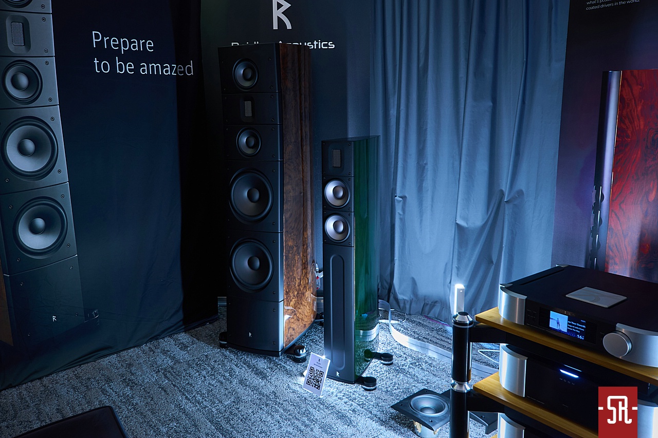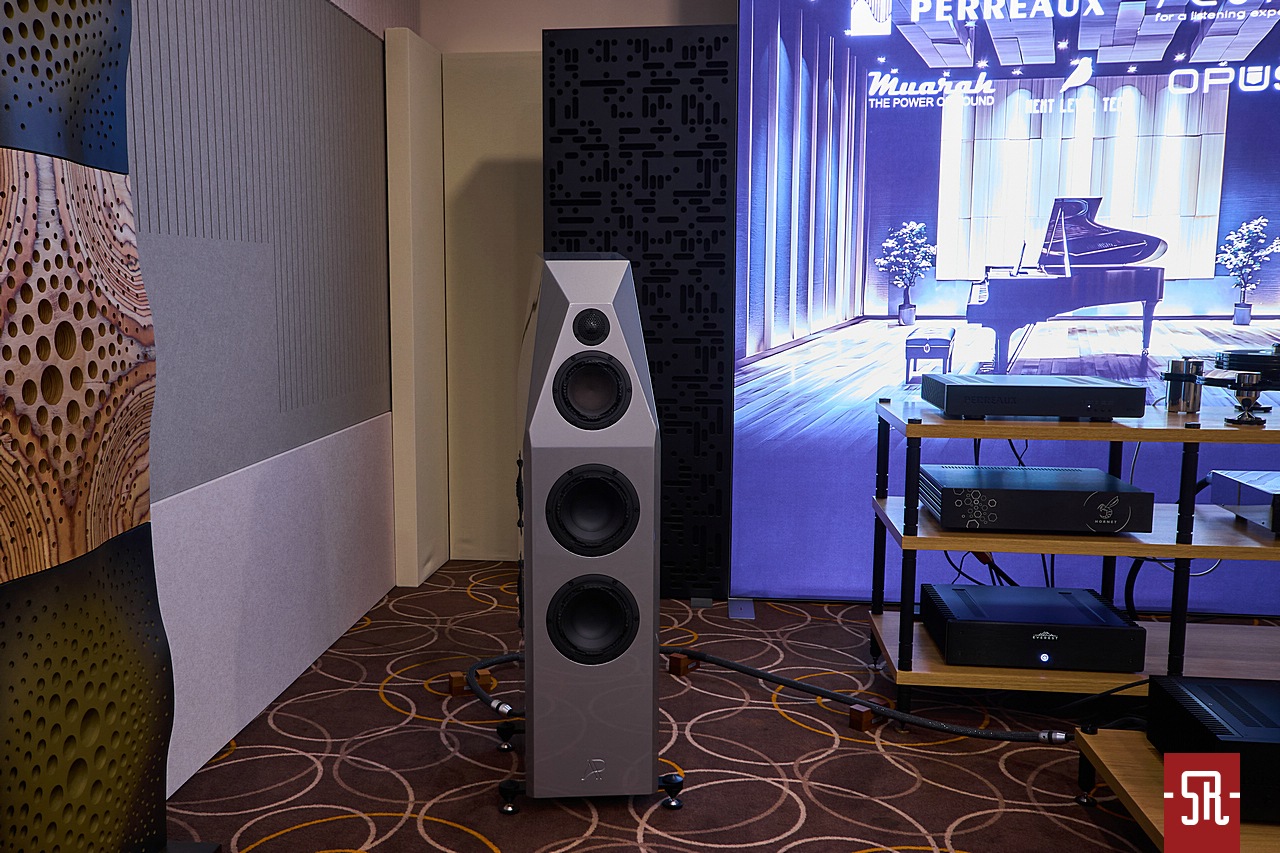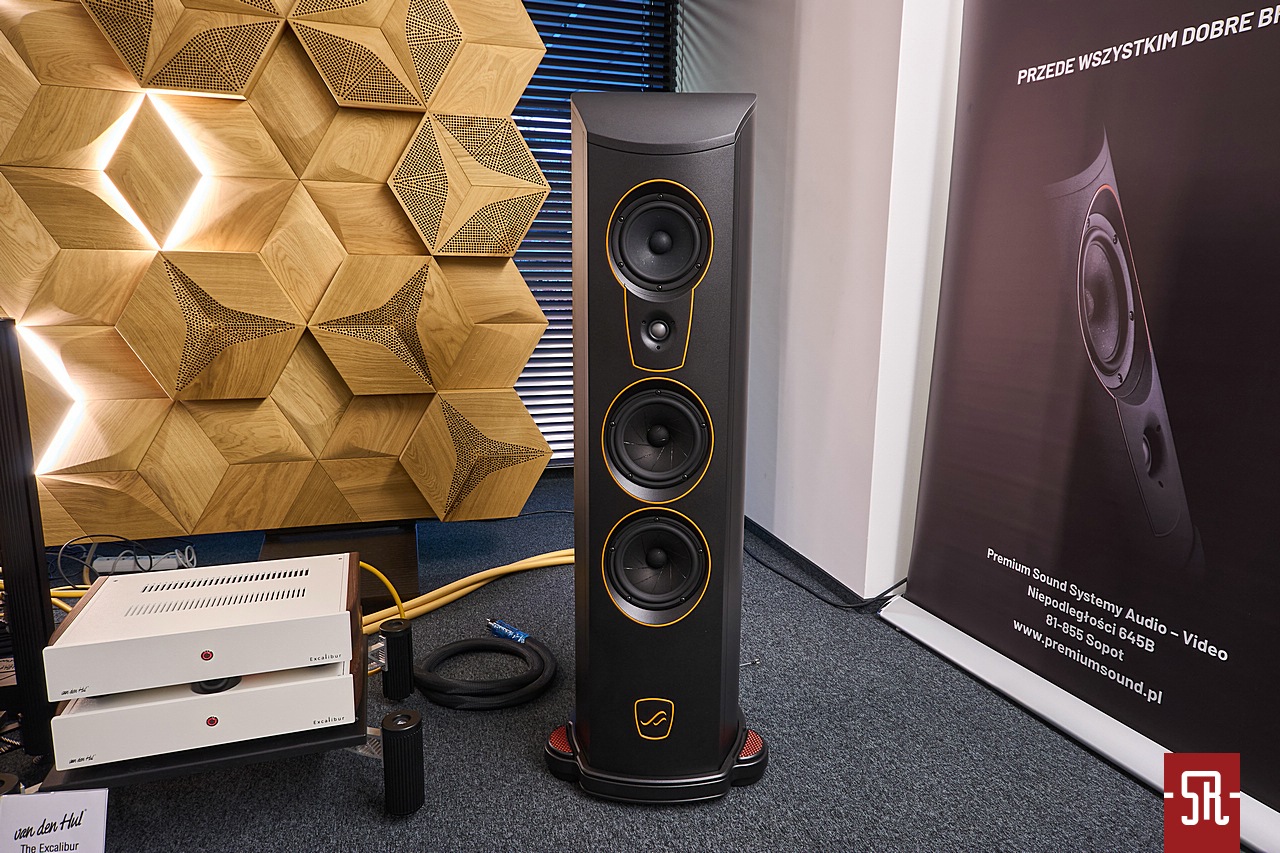 To ma się rozumieć białostocki dystrybutor Rafko i do tego w tym konkretnym pomieszczeniu wystawiający pełną gamę kolumn Perlisten. Nie wiem, czy wiecie, ale to wbrew pozorom bardzo ciekawa marka. Niby w podstawowej formie dedykowana dla kina domowego z istotnym w najwyższym standardzie jakości obrazu i dźwięku THX, jednak jest na tyle dobrze zaprojektowana, że równie dobrze radzi sobie w wysublimowanym odtwarzaniu muzyki w trybie stereo. Jeśli ktoś jest tym faktem zaskoczony, zalecam poszukać naszych opisów jak na dość krótki staż marki w portfolio Rafko stosunkowo sporej liczby konstrukcji. A były nimi nie tylko modele proste podstawkowe i wolnostojące, ale także ich wersje rocznicowe, co pokazuje, że firma jest prężna w działaniu na każdym wspomnianym polu od wielu lat. Jaki był konkretny cel wizyty? Otóż podczas niedawno opisywanej przez nas wyprawy na jubileusz tego dystrybutora odbywały się warsztaty na temat posiadanych w ofercie marek. Naturalnie jedną z nich jest omawiany Perlisten, który wówczas jeszcze na zdjęciach pokazywał najnowszy pomysł marki na dość nietypowe pod względem kształtów subwoofery. Dlatego gdy dowiedziałem się, że jeden model z tej serii wylądował na prezentacji podczas tegorocznego AVS, postanowiłem obejrzeć go na własne oczy i ewentualnie posłuchać na własne uszy. Który to? Pewnie się zdziwicie, ale mówimy o stojącym po prawej stronie stolika z elektroniką, pionowo zorientowanym prostopadłościanie. Forma dotychczas niespotykana, ale z racji częstego braku miejsca i według specyfikacji bardzo dobrych osiągów technicznych warta tak zwanej świeczki. Jak wypadł konkretnie, naturalnie z braku czasu na przełączanie pomiędzy różnymi opcjami na ocenę nie było szans. Jednak muszę powiedzieć, że podobnie do zeszłego roku, także w tym panowie z Białegostoku udanie zestroili system z wykorzystaniem tego typu dodatków i to do słuchania w wersji stereofonicznej. Dzięki temu zejście basu było bardzo dobre, ale także mimo wad pomieszczenia zwarte, dzięki czemu muzyka z wielkim luzem brzmiała w pełnym spektrum częstotliwościowym.