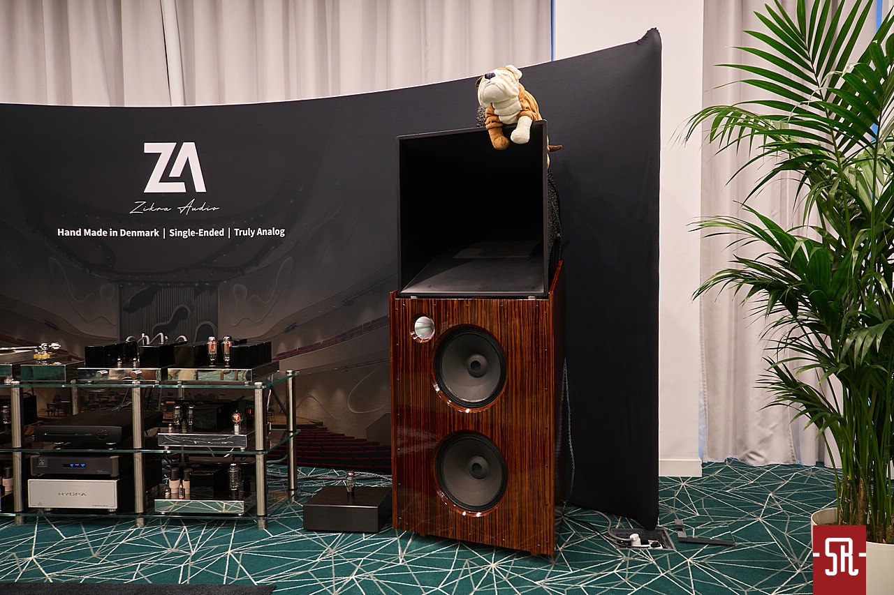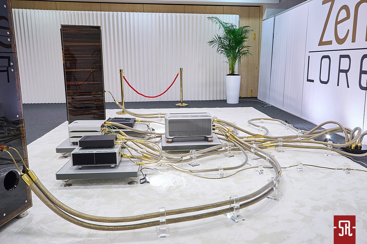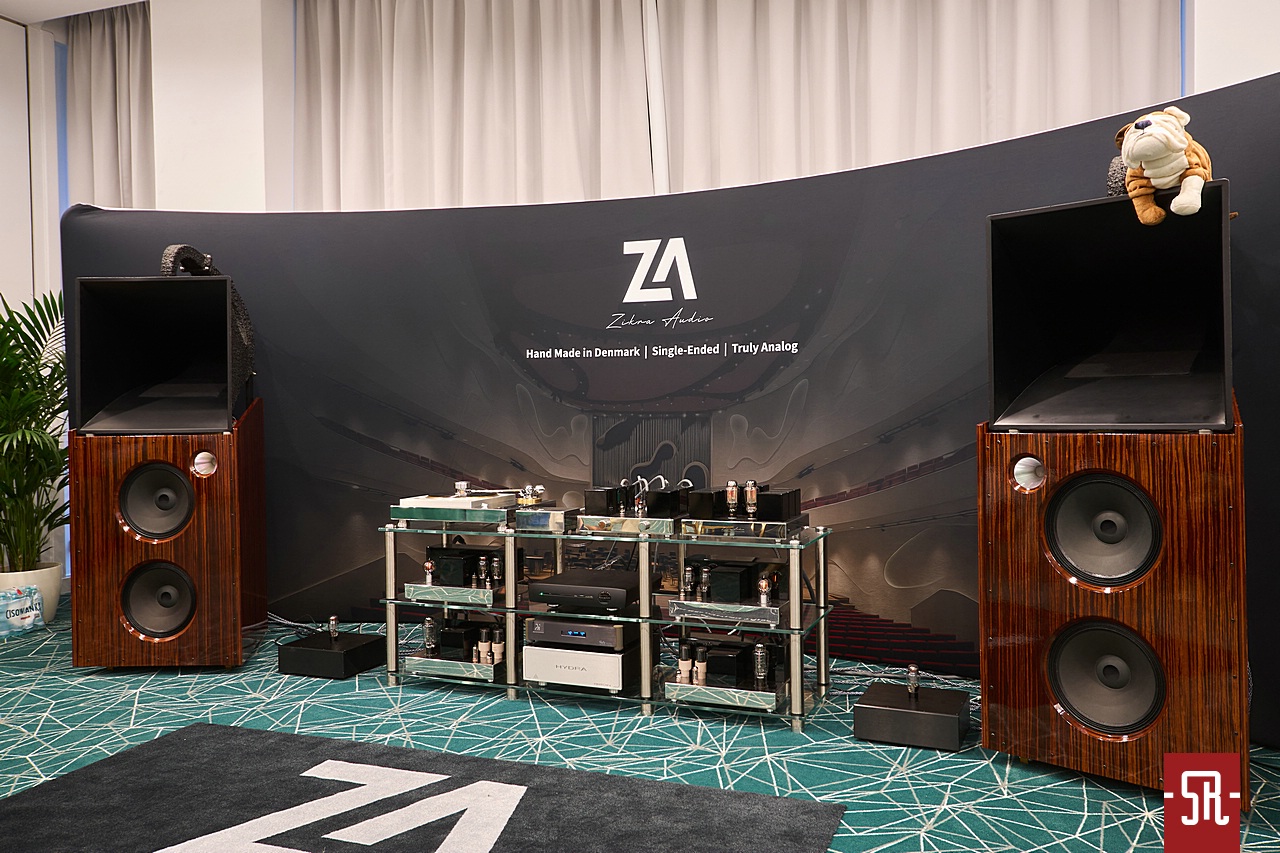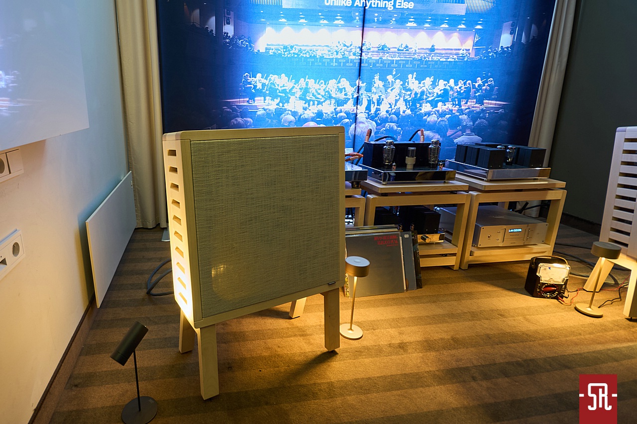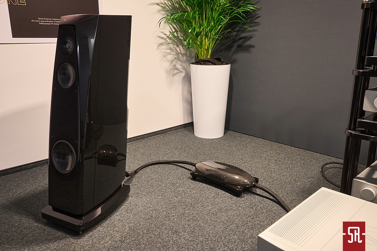 Nie oszukujmy się, u zaproszonych przez polskiego opiekuna Audiotite Duńczyków jak zwykle na bogato. Tym razem w pokazaniu flagowej serii pomagał im producent równie zjawiskowych wizualnie kolumn z Hiszpanii – Lorenzo Audio Lab. I dobrze, gdyż moim zdaniem obydwa podmioty tak pod względem designu, jak i brzmienia idealnie się uzupełniały. A wiem to z autopsji, gdyż miałem u siebie bardzo podobny zestaw okablowania serii #X Zensati i wiem co potrafią. A potrafią wiele, co pokazała w tym roku prezentowana konfiguracja. Co mam na myśli? Chodzi o moje podejście do kolumn z hornem w roli falowodu dla jakiegokolwiek przetwornika. Owszem, jestem w stanie takiej konstrukcji jakiś czas z przyjemnością posłuchać. Ba, nawet zrozumieć chęć obcowania z tym przez wielu moich znajomych prze długie lata. Ale ich bezpośredniość prezentacji sprawia, że abym nie zaliczył bolesnego wkładania głowy do przysłowiowego wiadra, musi to być najwyższych lotów majstersztyk projektowy i konfiguracyjny. Nic, nawet na moment nie może wyskoczyć przed szereg lub odskoczyć na bok. I taki stan moim zdaniem dzięki duńskim kablom wespół z hiszpańskimi kolumnami udało się uzyskać podczas tej wystawy. Dla mnie osobiście ten set wypadał znacznie lepiej od zestawu #X-ów z innymi zespołami głośnikowymi na wystawie w Monachium. Przekaz był bardziej spójny i pełen nieposkromionej energii oraz ekspresji, co było ewidentnie lepsze niż w maju w Niemczech. Tam kolumny oparte były o serię małych przetworników, co z naturalnych względów miało swoje wady. Tutaj zaś wielkie membrany całkowicie odmiennie kreowały wydarzenia sceniczne. Owszem, na tle tamtej odsłony ze zwykłymi zespołami głośnikowymi – model znajdziecie w stosownej relacji – produkt Lorenzo trącał megafonem, ale jedynie jako drobiazgowe ogniskowanie scenicznych bytów oraz w służbie utrzymania dźwięku na poziomie ciekawej nieobliczalności. Czy mógłbym żyć z tym na co dzień, nie wiem. Wiem jednak, iż ten pokój był jednym z niewielu, w których tubowe kolumny raczej zachęcały, a nie zniechęcały mnie do słuchania muzyki. I nawet nie będę już teraz tego udowadniał, gdyż tę tezę automatycznie obronię podczas opisywania innego pokoju z tubami. Podsumowując tę wizytę powiem tylko, pokaz na tyle mnie zaintrygował, że mimo obecnego braku przekonania do ewentualnego ostatecznego wyboru tego typu kolumn dla siebie, podczas kuluarowych rozmów z rodzimym dystrybutorem ZenSati mocno optowałem za zastanowieniem się przez niego nad opieką nad marką Lorenzo. Spokojnie, niekoniecznie polegającej na ściągnięciu ich flagowych konstrukcji, bo na nie nie wystarczy nawet sprzedaż zdrowej nerki, ale choćby niższych modeli, z których jeden mniejszy jest identyczny od strony konstrukcyjnej i aparycyjnej. Jest po prostu mniejszy, zatem przystępniejszy cenowo, co daje szansę nabycia fajnego brzmienia w fajnym wykończeniu znacznie większej liczbie pozytywnie zakręconych, co istotne tubowych audiomaniaków. Jak to się skończy, oczywiście pokaże czas. Wieńcząc ten akapit wspomnę jeszcze, iż tendencyjnie w opisie pominąłem mającą wiele do powiedzenia elektronikę. Nie była już tak porażająco ładna i jak wynika z pomijającego ją banera za systemem, okazała się jedynie cichym bohaterem, co z automatu spowodowało li tylko zdawkowe wspomnienie o niej.