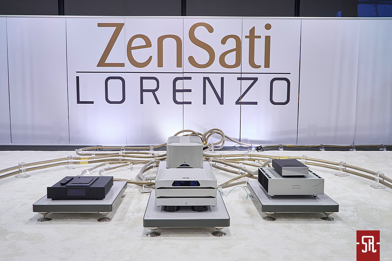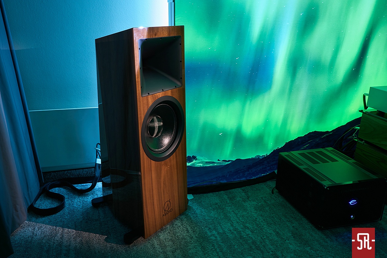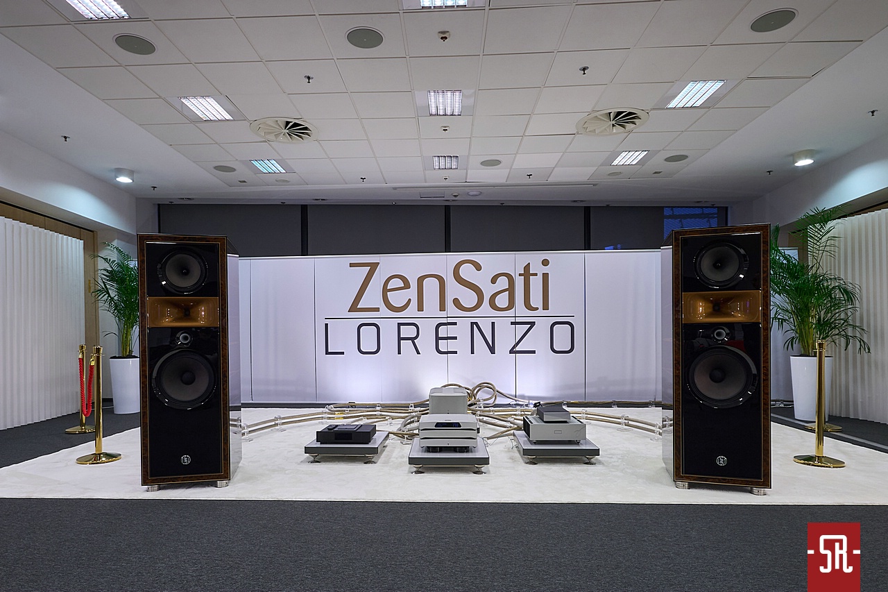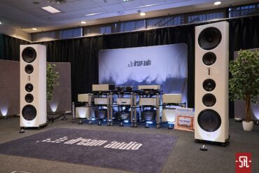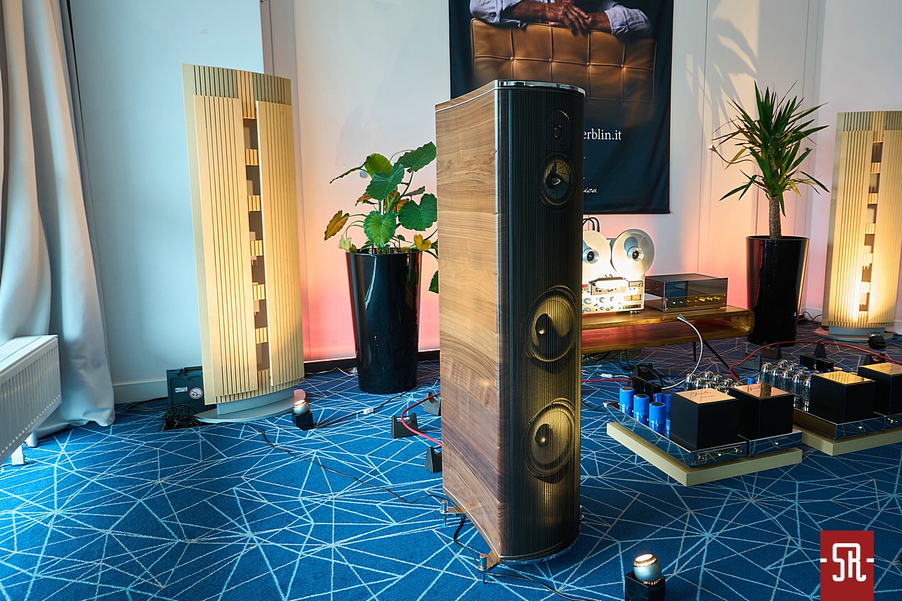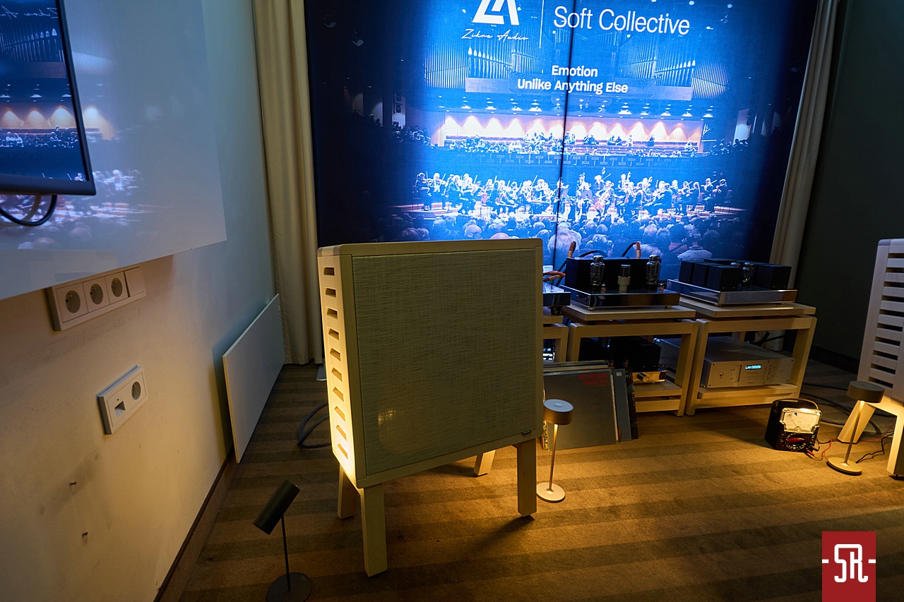 Nie oszukujmy się, u zaproszonych przez polskiego opiekuna Audiotite Duńczyków jak zwykle na bogato. Tym razem w pokazaniu flagowej serii pomagał im producent równie zjawiskowych wizualnie kolumn z Hiszpanii – Lorenzo Audio Lab. I dobrze, gdyż moim zdaniem obydwa podmioty tak pod względem designu, jak i brzmienia idealnie się uzupełniały. A wiem to z autopsji, gdyż miałem u siebie bardzo podobny zestaw okablowania serii #X Zensati i wiem co potrafią. A potrafią wiele, co pokazała w tym roku prezentowana konfiguracja. Co mam na myśli? Chodzi o moje podejście do kolumn z hornem w roli falowodu dla jakiegokolwiek przetwornika. Owszem, jestem w stanie takiej konstrukcji jakiś czas z przyjemnością posłuchać. Ba, nawet zrozumieć chęć obcowania z tym przez wielu moich znajomych prze długie lata. Ale ich bezpośredniość prezentacji sprawia, że abym nie zaliczył bolesnego wkładania głowy do przysłowiowego wiadra, musi to być najwyższych lotów majstersztyk projektowy i konfiguracyjny. Nic, nawet na moment nie może wyskoczyć przed szereg lub odskoczyć na bok. I taki stan moim zdaniem dzięki duńskim kablom wespół z hiszpańskimi kolumnami udało się uzyskać podczas tej wystawy. Dla mnie osobiście ten set wypadał znacznie lepiej od zestawu #X-ów z innymi zespołami głośnikowymi na wystawie w Monachium. Przekaz był bardziej spójny i pełen nieposkromionej energii oraz ekspresji, co było ewidentnie lepsze niż w maju w Niemczech. Tam kolumny oparte były o serię małych przetworników, co z naturalnych względów miało swoje wady. Tutaj zaś wielkie membrany całkowicie odmiennie kreowały wydarzenia sceniczne. Owszem, na tle tamtej odsłony ze zwykłymi zespołami głośnikowymi – model znajdziecie w stosownej relacji – produkt Lorenzo trącał megafonem, ale jedynie jako drobiazgowe ogniskowanie scenicznych bytów oraz w służbie utrzymania dźwięku na poziomie ciekawej nieobliczalności. Czy mógłbym żyć z tym na co dzień, nie wiem. Wiem jednak, iż ten pokój był jednym z niewielu, w których tubowe kolumny raczej zachęcały, a nie zniechęcały mnie do słuchania muzyki. I nawet nie będę już teraz tego udowadniał, gdyż tę tezę automatycznie obronię podczas opisywania innego pokoju z tubami. Podsumowując tę wizytę powiem tylko, pokaz na tyle mnie zaintrygował, że mimo obecnego braku przekonania do ewentualnego ostatecznego wyboru tego typu kolumn dla siebie, podczas kuluarowych rozmów z rodzimym dystrybutorem ZenSati mocno optowałem za zastanowieniem się przez niego nad opieką nad marką Lorenzo. Spokojnie, niekoniecznie polegającej na ściągnięciu ich flagowych konstrukcji, bo na nie nie wystarczy nawet sprzedaż zdrowej nerki, ale choćby niższych modeli, z których jeden mniejszy jest identyczny od strony konstrukcyjnej i aparycyjnej. Jest po prostu mniejszy, zatem przystępniejszy cenowo, co daje szansę nabycia fajnego brzmienia w fajnym wykończeniu znacznie większej liczbie pozytywnie zakręconych, co istotne tubowych audiomaniaków. Jak to się skończy, oczywiście pokaże czas. Wieńcząc ten akapit wspomnę jeszcze, iż tendencyjnie w opisie pominąłem mającą wiele do powiedzenia elektronikę. Nie była już tak porażająco ładna i jak wynika z pomijającego ją banera za systemem, okazała się jedynie cichym bohaterem, co z automatu spowodowało li tylko zdawkowe wspomnienie o niej.