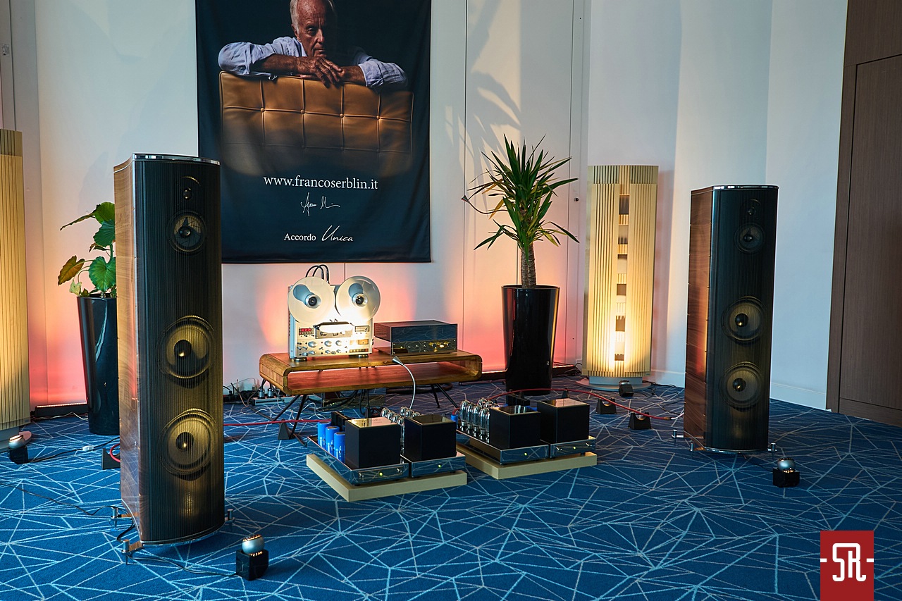 Już lekko przedpremierowo wiedziałem, z czym w tym miejscu będę miał przyjemność obcować. Tak tak, przyjemność, gdyż u stołecznego Grobela zawsze jest miło i kameralnie. Owszem, to jest jego od wielu lat praktykowany sposób na prezentację, ale co ciekawe mimo cyklicznej, czyli corocznej powtarzalności znakomicie się sprawdza. Co prawda słuchacze z automatu skazani są jedynie na jego muzyczne wybory – cynicznie nagrywa muzykę na magnetofon i omamia ludzi wirującymi szpulami, ale przecież tego typu impreza ma pokazać dobre strony systemu i facet tego się trzyma. I tak podczas podejmowania decyzji zakupowej dany komponent musi wylądować u zainteresowanego klienta, to po co ryzykować spotkanie z maniakiem, który podając swoją płytę do posłuchania stwierdza, iż jest tak źle nagrana, że jeszcze nigdzie nie wypadła dobrze i chce sprawdzić, co stanie się w tej konfiguracji. Bredzę? Uwierzcie mi, kilka razy pomagałem w takich wydarzeniach i na własnej skórze przekonałem się, że tacy mistrzowie istnieją. Nie rozumiem ich, ale nic na to nie poradzimy. No chyba, że pójdziemy drogą Grobela, ale nie oszukujmy się, patrząc na wystawę z perspektywy poczynać wszystkich podmiotów jest ewenementem. Co takiego w tym roku nam zaserwował? Jak na markę Franco Serblina wielkie kolumny podłogowe Accordo Unica. Naturalnie do moich dwumetrowych wież im daleko, ale uwierzcie, nowe podłogowe paczki spod tego znaku towarowego to zaskakujący progres rozmiarowy. A jak wiadomo, wielkość konstrukcji, a co za tym idzie uzbrojenie w większą liczbę przetworników stawia konkretne wymagania sprzętowe, dlatego wystawca nie bawił się w problematyczne próby z cherlawym wzmocnieniam i postawił na sterowane firmowym przedwzmacniaczem JP 80 MC MkII dwuczęściowe monobloki Jadis JA 200 MkII. Co sądzę o tym secie? Powiem tak, było miło, ale dla mnie mogłoby z większym pazurem. Ale to dla mnie, gdyż nie tylko podczas wystawy, ale już po niej w czeluściach Internetu spotkałem się z opinią, iż to dla wielu był dźwięk życia. W moim przypadku jak wspomniałem nie, ale jaki był naprawdę, być może przekonam się podczas testu tych, będących nowością w ofercie marki Franco Serblin kolumn Unica w okowach swojego salonu. Co by jednak nie mówić, z takim samym, czyli pozytywnym nastawieniem nie tylko wszedłem do, ale także wyszedłem z tego pokoju.