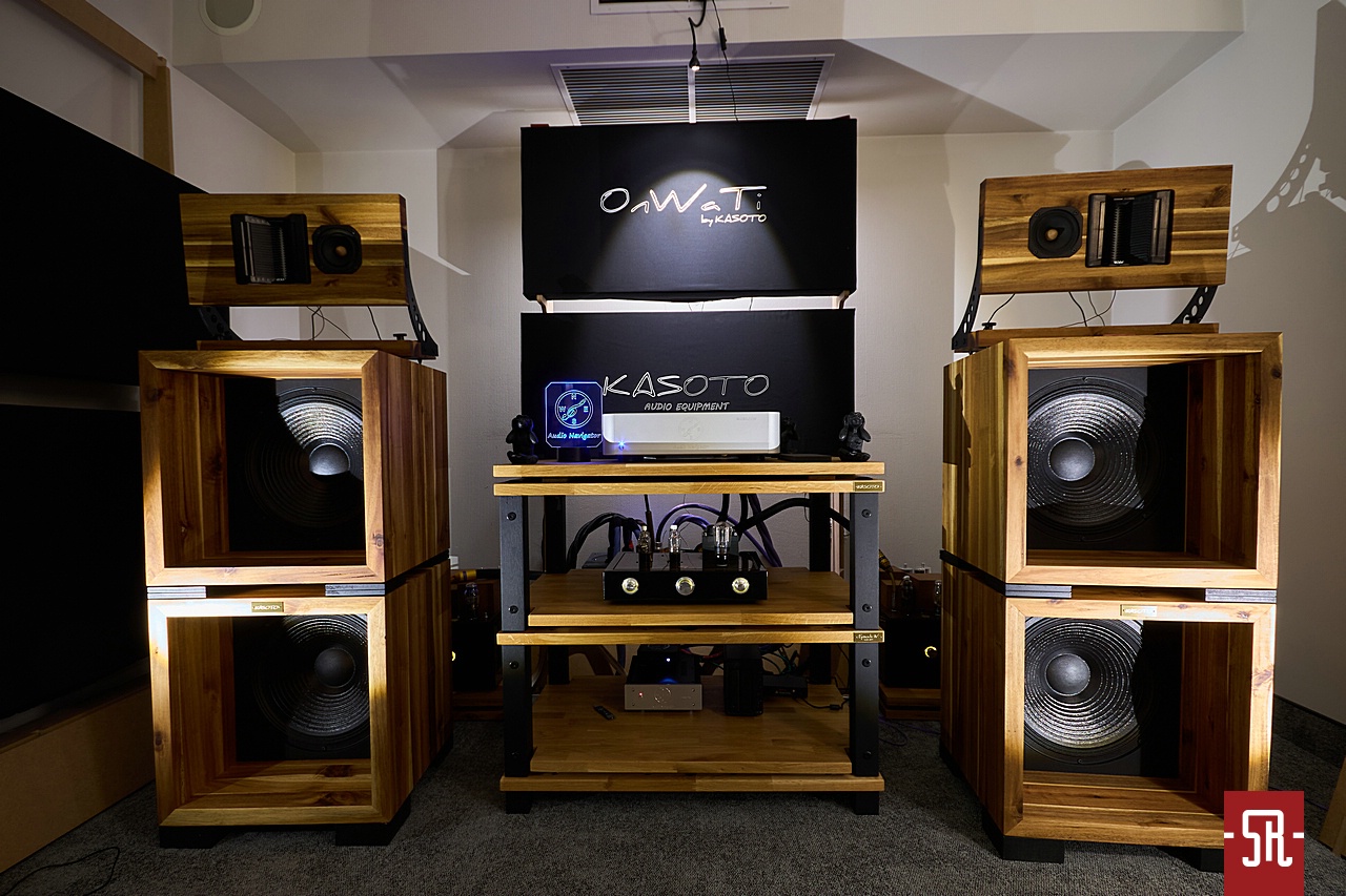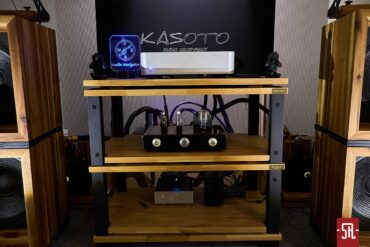 Co prawda gospodarzom podczas wizyty zdradziłem, że jestem u nich z dwóch powodów, ale tak naprawdę były trzy. Pierwszy to całkowicie inne podejście do prezentacji muzyki ich systemów, aniżeli moje najbardziej odjechane wzorce od tego co teraz mam. Drugim była znajomość z jednym z analogowych pobratymców pomagającym przedstawicielom Kasoto. Zaś trzecim już po drugim dniu wystawy kilkukrotne spotkanie się w necie z opinią, iż to dźwięk wystawy. Co zastałem u rzeczonych piewców tub i lamp? Na wstępie zaliczyłem mentalną masakrę, jaką było źródło plikowe. Toż to była zbrodnia w biały dzień w tym analogowym przybytku, ale jeśli taka decyzja zapadła, wziąłem ją na klatę. Później było już nieco lepiej. Dlaczego tylko nieco? Otóż co roku mocodawcy tego pomysłu na muzykę serwują słuchaczom inne zespoły głośnikowe. Najczęściej tuby, czym tak naprawdę. mimo ogólnego stronienia od nich, na swój sposób nimi mnie przyciągają. Grają inaczej od wszystkich, jakie zazwyczaj udaje mi się posłuchać, co sprawia, że za każdym razem zdobywam nową sprawność harcerską. Ale przyznam, iż w sensie pozytywnym, bo ich forma przekazu jest „jakaś”, a to pierwszy krok do rozkochania w sobie grupy klientów poszukujących czegoś nietuzinkowego. Oczywiście w tym roku też były wariacje na temat tub, jednak jak to u nich bywa, kolejny raz inne od wszystkiego co znam. W tym dziwnym projekcie zamiast górnego i dolnego zakresu utubiono przetworniki basowe, a realizujące wyższe częstotliwości drivery usadowiono na płaskiej desce. W efekcie zostałem poczęstowany kierunkowym basem – fakt dobrze kontrolowanym i bliżej nieokreśloną ścianą walczących ze sobą zakresów średnicy i wysokich tonów. Być może trafiłem na zły utwór, ale wrażenie opisanej prezentacji było tożsame w dwóch kolejnych kawałkach podczas mojej wizyty. Czy zatem widzę w tym jakiś problem? Jasne, że nie. Przecież zawsze piszę, iż ta marka wymyka się wszelkiemu zaszufladkowaniu i ostatni występ jest na to dobitnym dowodem. A co z opinią dźwięku wystawy? Cóż, mimo zawsze odczuwalnej przyjemności z odwiedzania tego pokoju nie pokuszę się o jakikolwiek werdykt. Napisałem, że do takiej prezentacji nie jestem mentalnie przygotowany, dlatego na pewno nie potwierdzę oceny z Internetu. Ale za to z przyjemnością podziękuję gospodarzom za kolejny raz nowe doświadczenie soniczne.