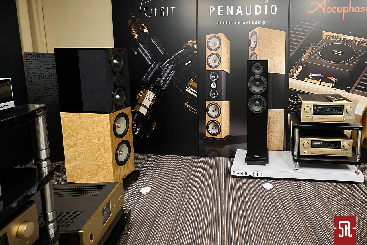 Niby pokój firmowała marka produkująca kolumny, ale tak naprawdę w tym miejscu stacjonował koniński salon Audio-Mix. Znany bardzo dobrze nie tylko nam, ale także Wam, gdyż mieliśmy z jego ofertą kilka ciekawych przygód testowych. A tylko kilka nie dlatego, że na półkach nie ma towaru, tylko głównym trzonem działalności jest zaproponowanie Koninianom szerokiej gamy sprzętu z pełnego portfolio dostępnego w Polsce. Dzięki temu oferuje nie tylko swoje marki w postaci okablowania i kolumn Esprit, ale także widniejącego na zdjęciach Accuphase, w zeszłym prezentowanego roku MBL-a i wiele innych zacnych brandów. Nie trzeba jechać przez pół kraju, aby w Koninie czegoś ciekawego posłuchać, tylko jest pod ręką. To mieszkańcom wielkich aglomeracji może wydawać się banalne, ale zapewniam, w niedużych miastach urasta do problemów z puli prawie nierozwiązywalnych. Dlatego też z tego też powodu zawsze chętnie odwiedzam ten podmiot. A jeśli tak jak w tym roku pokazuje coś nowego w swoim dorobku dystrybucyjnym, tym bardziej w tym roku nie mogłem odpuścić spotkania z mocodawcą salonu. Co obecnie promował? Chodzi oczywiście o markę kolumnową. Z tego co usłyszałem podczas wizyty znającą się na rzeczy, gdyż grające, teoretycznie zbyt wielkie kolumny nie miały żadnych problemów ze stworzeniem fajnego spektaklu. Szybkiego i obdarowanego mocnym uderzeniem, ale bez wyskoków w bok z rozlewaniem basu i nadinterpretacją wysokich tonów. Przywołane aspekty w nawet w przypadku małych kolumn są zazwyczaj zmorą pokazów w Sobieskim, a tutaj stały wielkie paczki i przed zapewnieniem dobrego dźwięku nic ich nie powstrzymywało. Byłem tym na tyle usatysfakcjonowany, że spróbuję podjąć próbę ściągnięcia ich do nas na testy. Co z tego wyjdzie, z pewnością nie omieszkamy Was o tym powiadomić.