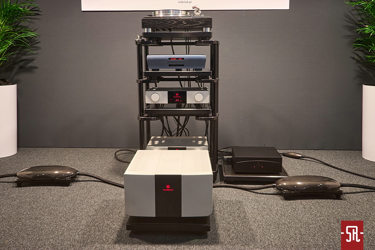 Zabranie głosu w przypadku tego pokazu HiFi Club-u było finałem zaliczenia naprawdę bardzo dużego pozytywnego zaskoczenia, bowiem na tle zeszłego roku muzyka znacząco nabrała rumieńców. Podobnie jak wówczas źródłem był gramofon VPI, jednak tym razem zniknęła surowość i pewnego rodzaju kwadratura prezentacji. Pojawiła się za to przyjemnie brzmiąca muzyka. Soczystsza i mniej spięta w sobie, dlatego bardziej lotna i przez to zachęcająca do dłuższego odsłuchu. To zapewne nadal nie jest ostatnie słowo tej konfiguracji, gdyż na pełne rozwinięcie skrzydeł na sto procent nie pozwalały warunki lokalowe – to raz. A dwa – swoje przypuszczenia opieram na fakcie osobistego testowania u siebie sekcji wzmocnienia ze stajni Karan-a i wiedzy co potrafi. Dlatego bez obaw o podejrzenie naciągania faktów mogę powiedzieć, iż tym rozdaniu system mimo znacznie lepszego wyniku grał tak na jakieś 60-70 procent swoich możliwości. Trochę szkoda, że warunki tego typu wydarzeń tak mocno degradują wieloletnią pracę inżynierów, ale cóż, nie mamy na to wpływu i dlatego należy cieszyć się, że z imprezy na imprezę w oparciu o zebrane doświadczenia z poprzedniego roku wystawcy poprawiają wyniki dźwiękowe. A jeśli tak jak Karan jakaś marka stawia na naszym rynku pierwsze kroki, cieszy tak skuteczne odrabianie lekcji – w rozumieniu dopieszczania konfiguracji, w której występuje – przez jej opiekunów.