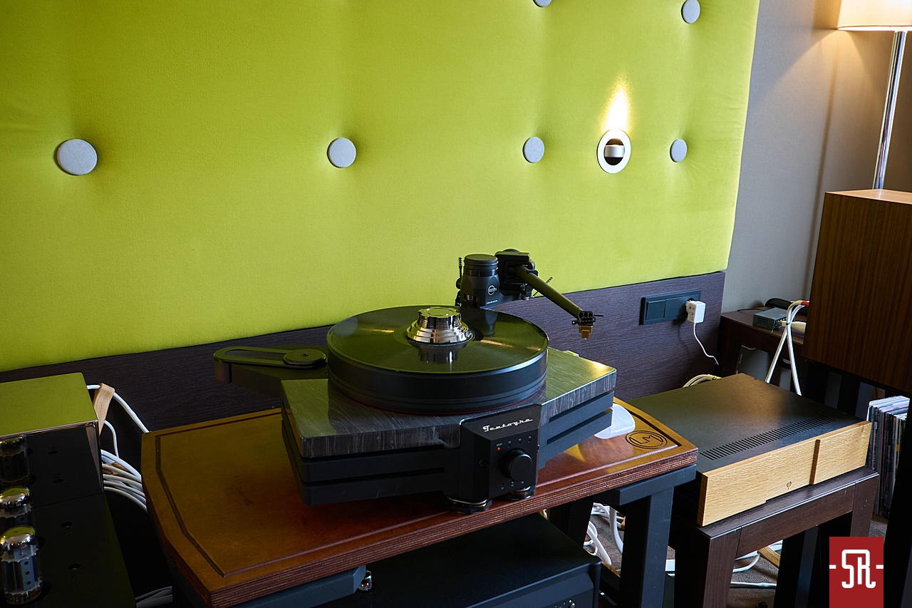 Jeśli czytaliście to, co dotychczas napisałem, chyba jasnym jest mój główny punkt programu odwiedzin tego katowickiego analogowego przybytku. Naturalnie mam na myśli gramofon SME 60, którego ostatnio stałem się szczęśliwym nabywcą. Sytuacja na wystawie była dla mnie bardzo komfortowa, gdyż grał z tą samą wkładką, jaka wisiała podczas moich starć dotyczących finalnego wyboru pomiędzy wspomnianym Anglikiem, a Słoweńcem, czyli Kuzmą XL DC. Wbrew pozorom dla mnie taki stan był bardzo ważny, bowiem pozwalał bardziej prawdziwie ocenić radzenie sobie kolumn najnowszej wersji YG Hailey 3 w tandemie z także nowo powołanymi do życia monoblokami Vitus Audio. Wnioski? Podobne do niedawnego odsłuchy tych kolumn z innym Vitusem w salonie RCM. Ewidentne potwierdzenie prezentacji pełnego energii i bajecznej kontroli basu, utrzymanie krawędzi dźwięku nawet w najbardziej karkołomnych pasażach muzycznych, co fenomenalnie przekładało się na nienaganne utrzymanie drive’u słuchanego materiału. Niestety dla miłośników ciepłych muzycznych klusek nie było mowy o rozwadnianiu żadnego z aspektów, tylko rzetelne artykułowanie najdrobniejszych niuansów serwowanych przez słuchany materiał. To oczywiście komuś nie do końca może odpowiadać, ale jeśli z metalowych, wytwarzanych w technologii toczenia z jednego puca, a nie wytłaczania z płaskiej blachy przetworników z krótkim skokiem membrany i obudowy zamkniętej oczekuje rozmytego obrazu, po prostu nie ma pojęcia o najważniejszych kwestiach naszej zabawy. Przesadzam? Bynajmniej, pewne rozwiązania techniczne są celowo stosowane, gdyż dedykowane znającym się na rzeczy melomanom, oczekującym konkretnego wyniku sonicznego. Ludziom poszukującym zjawiskowej ekspresji, czego ewidentnym przykładem była cała konfiguracja od mocno w estetyce zwartej energii grającego źródła w postaci gramofonu SME 60 z wkładką My Sonic Lab, przez nadającego odpowiedniego, ale nieprzekraczającego dobrego smaku body muzyce Vitusa, po szybko i zwarcie grające YG Hailey 3. To co zastałem w sali Platinium 1 było ogniem w najczystszej postaci, nie dlatego, że komuś coś nie wyszło albo było pozytywnym w wydźwięku wypadkiem przy pracy, tylko zostało w pełni zaplanowane i zrealizowane.