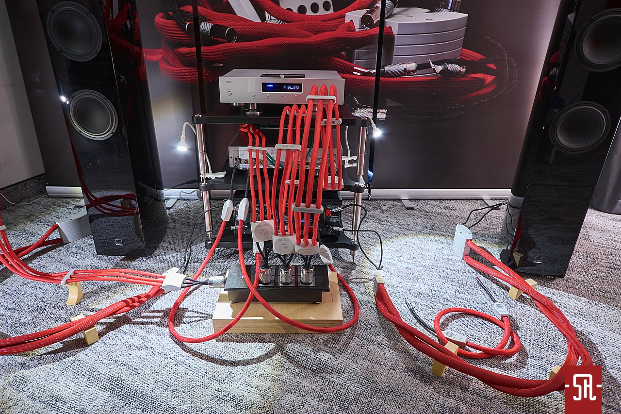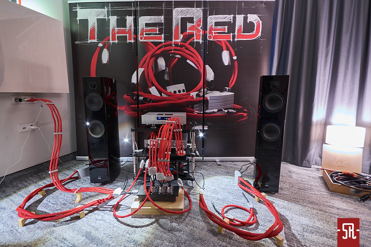 Parafrazując słowa znanej piosenki, wchodząc do tego wystawcy spokojnie można było zaśpiewać „Czerwono mi”. Oczywiście to efekt wyrazistego koloru otuliny flagowej serii okablowania rodzimego plichtowskiego producenta, którego pełny komplet po niedawno opublikowanym na naszych łamach teście został u Marcina na stałe jako redakcyjny punkt odniesienia. Dlaczego zapadła taka decyzja, w formie opisu zainteresowani mogli dowiedzieć się kilkanaście dni przed wystawą używając portalowej wyszukiwarki. Jeśli jednak z jakiś powodów ktoś nie do końca rozumiał ów wybór, w zeszłym tygodniu już werbalnie, bo w pokoju hotelu Sobieski miał szansę doświadczyć go własnym narządem słuchu. W tym roku wzorem częstych praktyk duńskiej marki ZenSati szef przybytku WK Audio odwrócił większość sprzętu tyłem do słuchaczy, aby w ten sposób już na starcie zasygnalizować, że jego domena to okablowanie. Byłem tam kilka razy po kilkanaście minut i muszę powiedzieć, iż ten sposób ekspozycji wywołał oczekiwane reakcje, gdyż ludzie, jeśli sami się nie domyślili, pytali, dlaczego został wykonany taki myk. Przyznacie, patent niezły, bo bardzo skuteczny. Co zaoferował tak nietypowo ustawiony konglomerat CEC-a, Vitusa i Gauderów okablowany ofertą WK Audio? W moim odczuciu wszystkie pozytywne cechy, które zauroczyły Marcina. Energia, atak i minimalne, skądinąd bardzo przyjemnie wpływające na podkręcenie emocji w muzyce wzmocnienia drive’u dźwięku, co nawet podczas moich wizyt w tym miejscu potwierdzało wielu odwiedzających. Byli na tyle wiarygodni, że raczej niemożliwym było ziszczenie się przypuszczenia, że tak naprawdę uwiódł ich wyrazisty kolor okablowania.