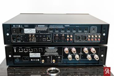 Ściany tylne to kolosalny, w porównaniu z oszczędnymi frontami kontrast a na stereofoniczne realia wręcz szaleństwo graniczące z obłędem. Proszę tylko popatrzeć. Nawet w końcówce, w której oprócz podwójnych terminali głośnikowych i zdublowanych gniazd wejściowych (RCA/XLR) znalazło się miejsce na wejścia IR, triggera, firmowej magistrali i USB do upgrade’u oprogramowania. A dopiero preludium do tego, co czeka nas w przedwzmacniaczu, a może właściwszym określeniem byłoby procesorze? Mniejsza z tym, bo patrząc na baterię interfejsów nie sposób nie zgodzić się ze stwierdzeniem, że „idzie nowe”. Jak inaczej bowiem wytłumaczyć obecność jedynie trzech par wejść liniowych z czego jedne to XLRy uzupełnione gniazdami RCA. Cała reszta to skierowane do miłośników wszelakiej maści źródeł cyfrowych cztery koaksjalne, dwa optyki, USB, gniazdo lan (o czym za chwilę) i …. 7 wejść plus jedno wyjście HDMI. Wyjść audio też mamy tyle, że spokojnie damy radę wysłać sygnał do 5 kanałów (AMP5 przyjmie je z chęcią).