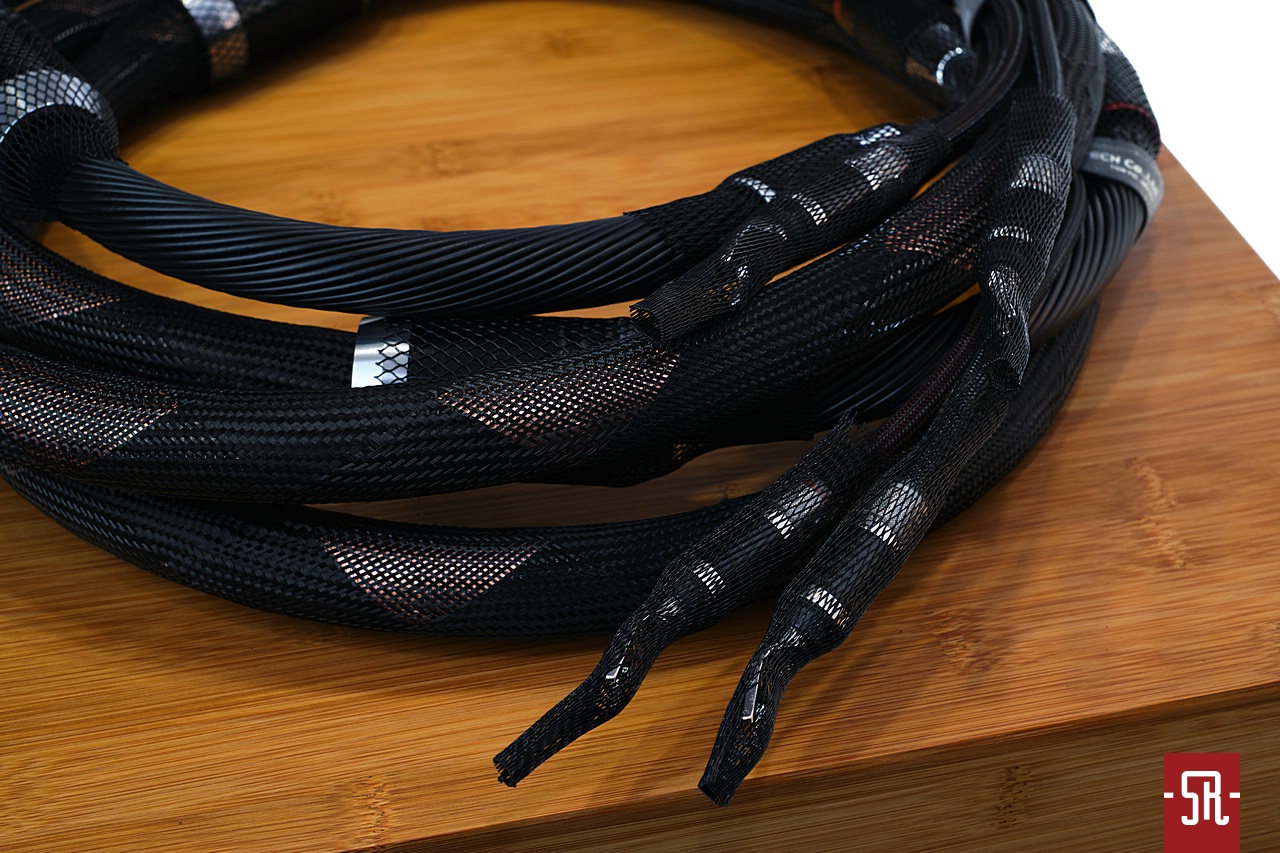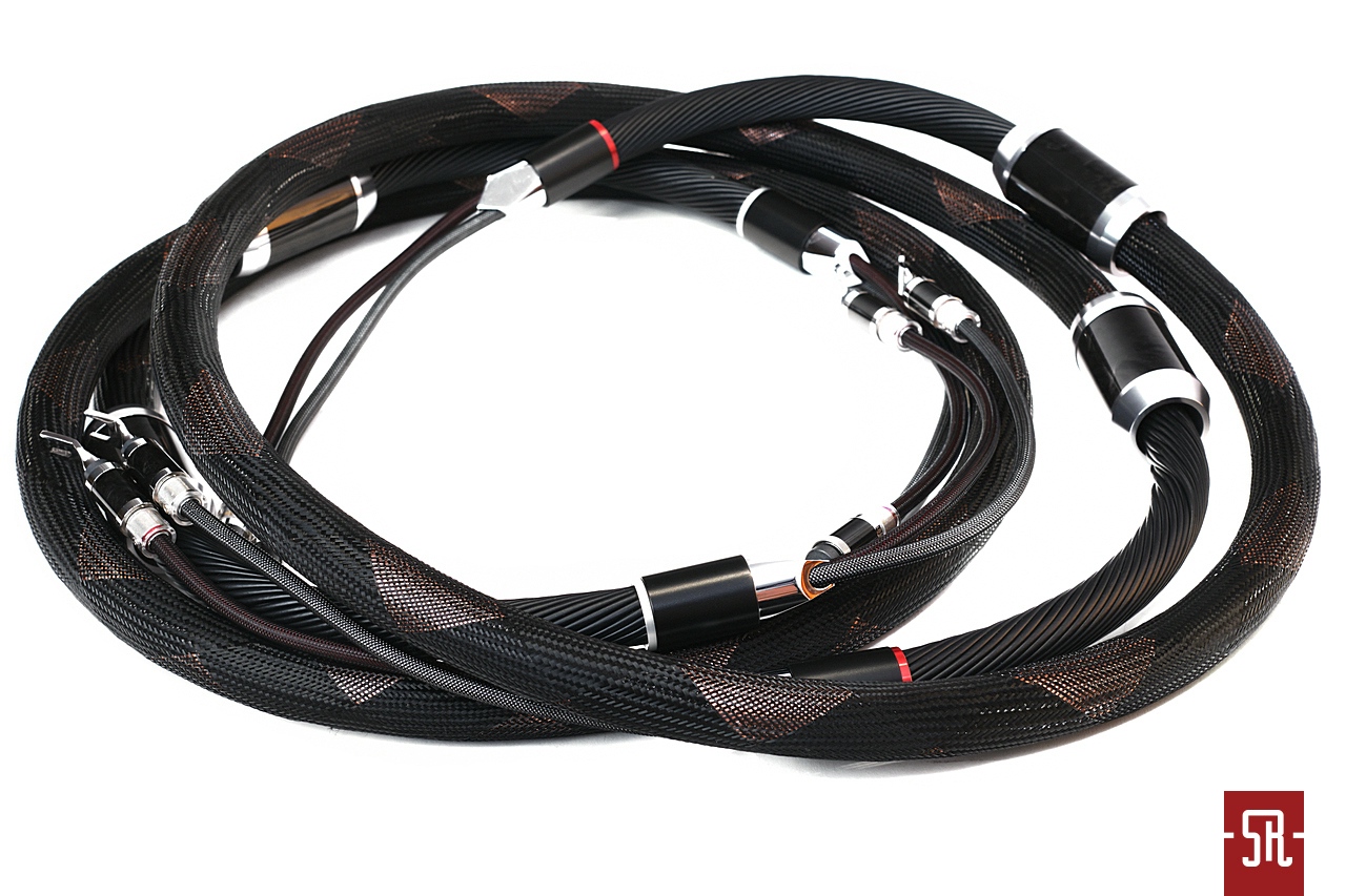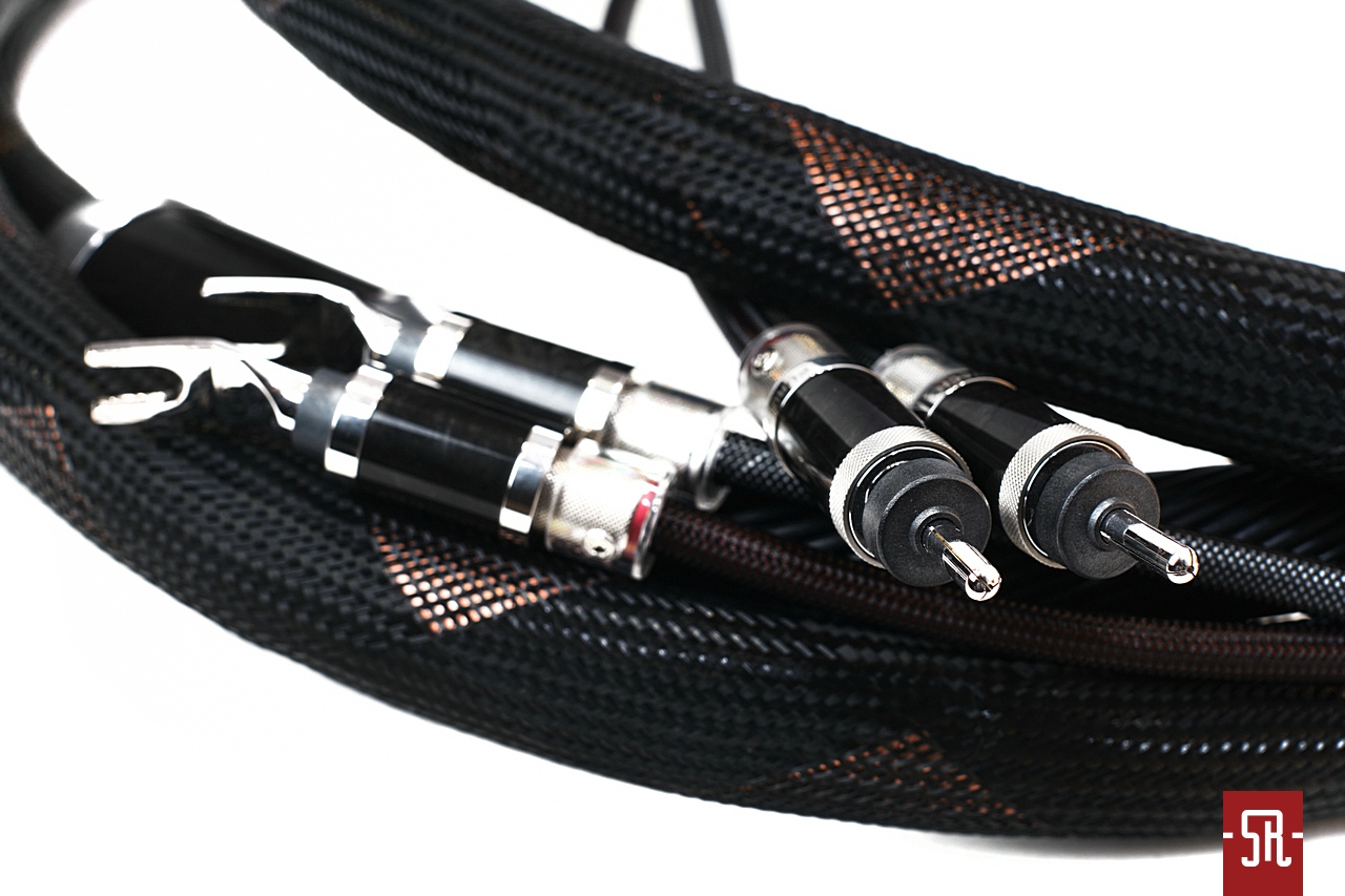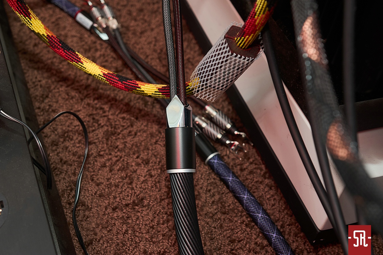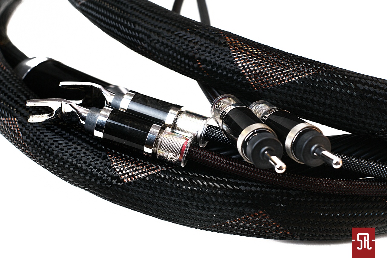 When it comes to the appearance of our guest, it is safe to say that everything is in line with the company’s DNA, from the delivery of the cable in an elegant wooden box (unboxing) to the black and copper color of the cable and the top-line plugs used to terminate the cables. However, it is worth being aware that the visual similarity preserved within the product siblings does not mean they are anatomical twins, because each of the wires, although based on similar materials, has an individualized structure optimized in terms of its purpose. And so it is with the S, whose arteries have a cross-section of 6.1 mm² were made, in accordance with the native tradition, of silver-plated copper conductors α(Alpha) OCC and pure (7N) copper α(Alpha) DUCC subjected to unique cryogenic and demagnetization processes, but their braiding, cross-sections and individual damping and shielding layers were selected in terms of its location in the system and transmitted signals. Let us start with what can be seen with the naked eye, i.e. the characteristic black-copper outer jacket and massive anti-vibration joints that slightly reduce the diameter of the cables, which are further divided into „+” and „-” wires in equally elegant splitters and are terminated with the company’s banana plugs (CF-202-N1(R)) and/or forks (CF-201-N1(R)). And how does it look like inside? Looking from the very center, each of the conductors consists of an inner core with 109 clockwise wound conductors Ø0.18 made of silver-plated copper α (Alpha) OCC, around which, this time anti-clockwise wound, 38 wires Ø0.18 silver-plated copper α (Alpha) OCC were placed, then 69 clockwise and 93 anti-clockwise wound conductors made of α (Alpha) DUCC (Dia Ultra Crystallized Copper) with Ø0.18. The insulation of each conductor is made of Polyethylene for audio applications. And only such a pair goes to a common tunnel made of paper wrap filled with polyester yarn. The next two layers are the shield – the inner one made of α foil (Alpha) and the outer one made of α (Alpha) OFC copper braid. Then, the whole thing is filled with PVC enriched with nano-ceramic particles of a flexible carbon compound and equally flaccid tubes made of the same material. Slowly approaching the black polypropylene braid, visible to the naked eye, it is impossible to miss another paper wrap and the final, third screen made of α copper foil (Alpha) responsible for the above-mentioned „golden” clearances.