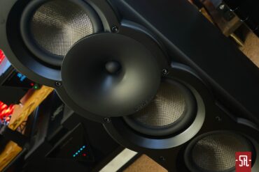 Już sesja unboxingowa unaoczniła, że żarty się skończyły i decydując się na tytułowe A4t warto nie tylko do ich wniesienia/rozpakowania postarać się o dodatkową parę (umięśnionych) rąk, co i wygospodarować odpowiednią – adekwatną do ich (kolumn, nie rąk) postury ilość miejsca. I proszę mi wierzyć, nie są to kurtuazyjne zwroty „kadzące” naszym gościniom, lecz na własnych plecach doświadczone i organoleptycznie zweryfikowane fakty, na podstawie których śmiem twierdzić, że bez min. 20-25 metrowego i to niezbyt „zagraconego” salonu spokojnie można skierować swoją uwagę ku nieco mniejszemu modelowi A3t, bądź nawet wspomnianemu wcześniej podstawkowemu A3m. Wracając do meritum a więc przynależnych temu akapitowi kwestii aparycyjno konstrukcyjnych warto wspomnieć iż przy trudnych do przeoczenia gabarytach (1285 x 280 x 450 mm) A4t reprezentują grono czterogłośnikowych, dwuipółdrożnych konstrukcji wentylowanych, czyli przekładając to na język nieco bardziej zrozumiały na ich frontach znajdziemy po trzy 215mm przetworniki nisko-średniotonowe z włókna węglowego pomiędzy którymi, a dokładnie górną parą, zaimplementowano umieszczony w charakterystycznym, dorównującym średnicą mid-wooferom falowodzie przerośnięta, bo aż 35mm kopułkę z kompozytu Teteron. Dolną część ściany przedniej zajmuje pionowa, zabezpieczona metalową siatką szczelina wylotu układu bas refleks a stabilność poprawiają przykręcane do podstawy i uzbrojone w biżuteryjne masywne kolce poprzeczne aluminiowe sztaby. Z kolei na plecach, pomijając pojedyncze acz uczciwie trzeba przyznać, że solidne, terminale głośnikowe nie dzieje się absolutnie nic. Podobnie sprawy mają się z dostępna paletą umaszczeń – jedyną opcją jest satynowa czerń.