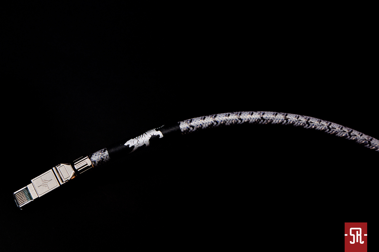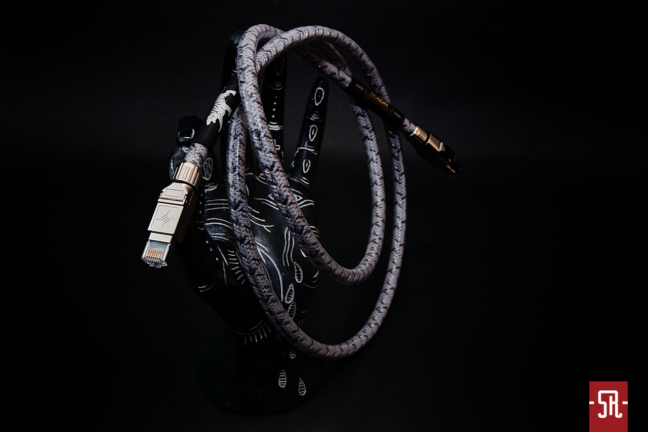 Co wiemy na temat naszego bohatera? Naturalnie na stronie producenta znajdziemy skrótowy opis technikaliów, niestety dla tak zwanego zwykłego Kowalskiego jest to brutalny nazewniczy tor przeszkód. Jednak nie zawsze z premedytacją zamierzony, bowiem często za skomplikowanymi nazwami kryją się nowe i nierzadko opatentowane rozwiązania, co skutkuje zderzeniem się czytelnika z nieznanym wcześniej około-technicznym słowotokiem. Mimo wszystko próbując przybliżyć nieco jego budowę we wspomnianej, niełatwej w odbiorze estetyce, najważniejszą informacją jest wykorzystanie do przesyłu danych litego przewodnika „UD CORE-7A” (CAT7A). Co według producenta jest istotne, to fakt połączenia działań przygotowujących ów przewodnik do finalnej postaci z opatentowanymi procesami „Photon Shield” oraz „H.S.E. Exclusive” i finalne ubranie go w powłokę tłumiącą złożone rezonanse „D-REN Sheath”. Kolejnym krokiem jest zastosowanie osłony sieciowej „DNB Shield”. Jeśli chodzi o zastosowane wtyki, Tiglon postawił na dedykowane do tego modelu niemieckie Telegartnery. Przyznacie, że nawet płynne przeczytanie zastosowanych zabiegów technologicznych nie jest łatwe, a co dopiero zrozumieć o co w tym wszystkim chodzi. Na szczęście nas interesuje co dzieje się po jego zastosowaniu, dlatego prosząc o potraktowanie mojego opisu z przymrużeniem oka nie rozwadniam tekstu próbami „rozkminiania”, co serwując nam serię skomplikowanych nazw producent miał na myśli, tylko wszystkich zainteresowanych skutkami wpięcia tytułowego kabla w tor zapraszam do lektury kolejnego akapitu.