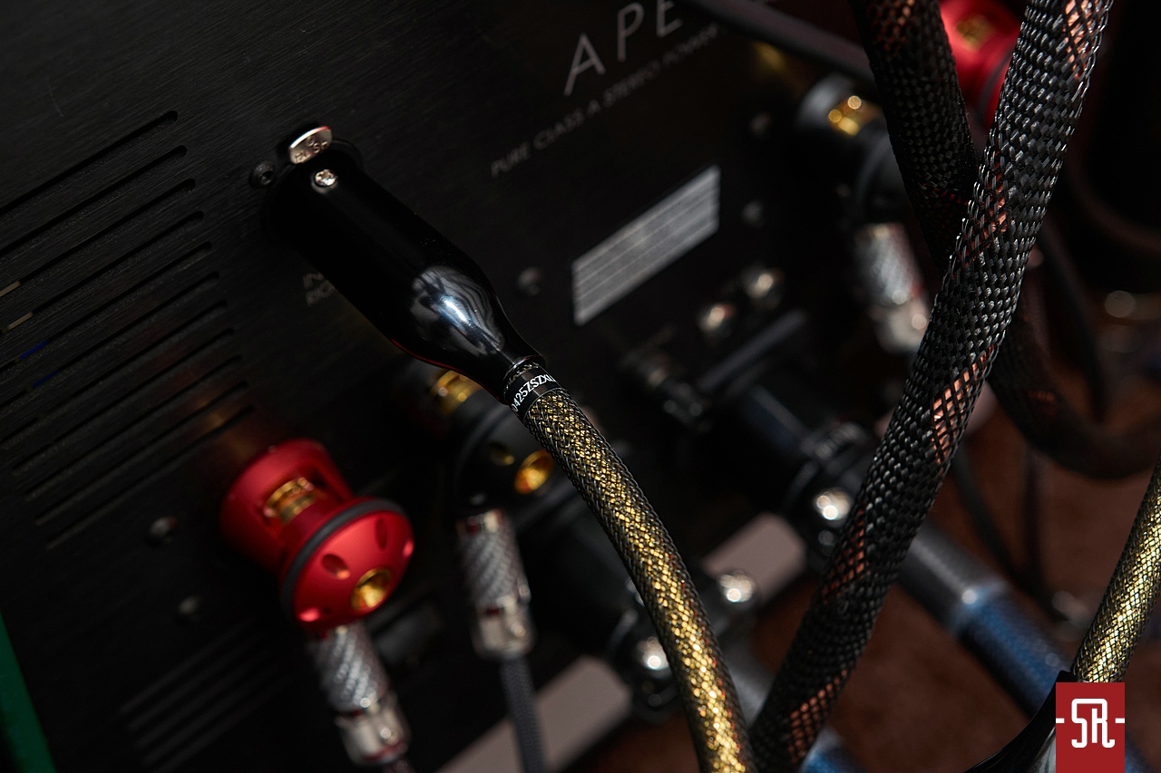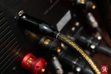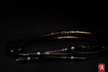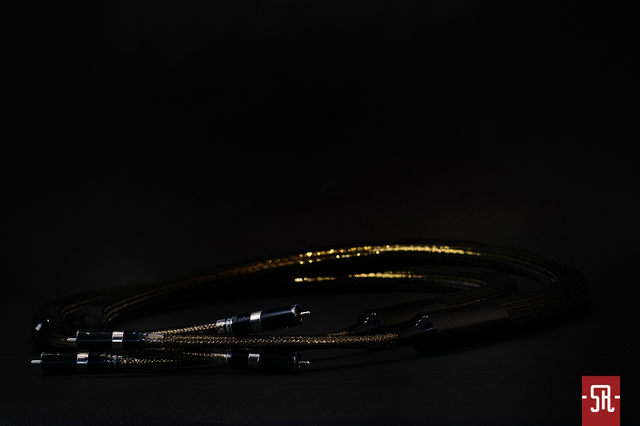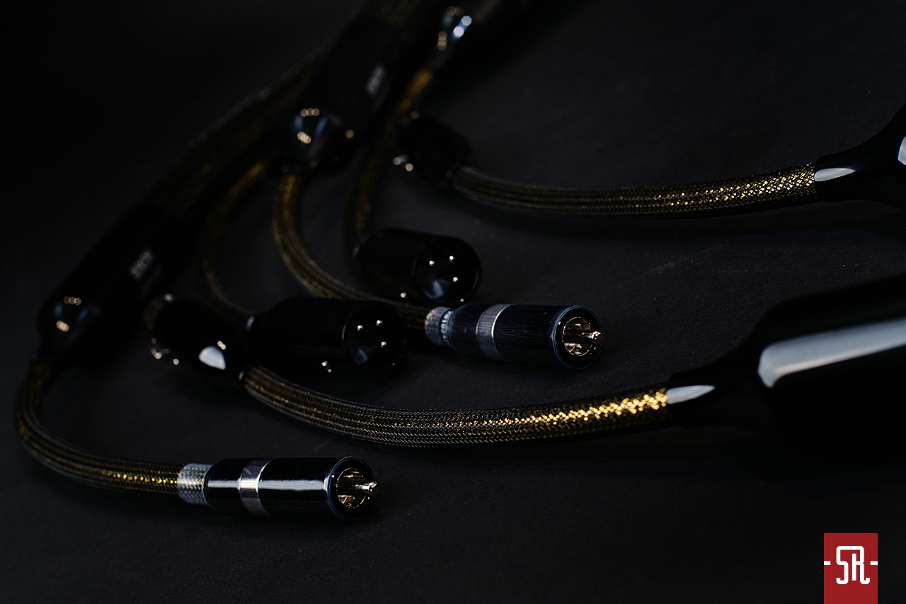 Jak powyższe zdjęcia unaoczniają sILENzIO są czarno złote, przez co nieco przypominają Acoustic Zen-y Absolute Copper, chociaż w duńskich przewodach zewnętrzna czarna siatka ochronna jest nieco gęstsza aniżeli w amerykańskich, a tym samym „złotość” przewodów nie jest tak absorbująca. Operujemy zatem w iście wieczorowej estetyce, którą podkreśla jedwabista czerń korpusów wtyków oraz usytuowanych nieco przed nimi wykonanych z podobną dbałością o detale redukujących średnicę tulei. I proszę mi wierzyć na słowo, że owe „pocieniacze” nie są li tylko designerską fanaberią twórcy a wielce przydatnym pod względem ergonomii ułatwieniem, bowiem przy widocznych, nader absorbujących średnicach aplikacja obu interkonektów byłaby w większości przypadków mocno problematyczna i wymagała zamawiania przebiegów o długościach znacznie przewyższających realne potrzeby. A tak końcówki przewodów są znacznie bardziej wiotkie, więc tak montaż, jak i ich ułożenie w zaszafkowej, zazwyczaj ograniczonej przestrzeni staje się nieco mniej karkołomnym wyzwaniem.