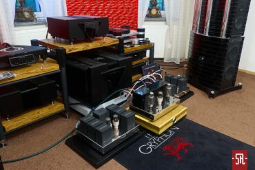 Ponieważ tak z aparycji, budowy, jak i walorów sonicznych przedwzmacniacza zdążyliśmy się z Jackiem obszernie wyspowiadać tym razem w części opisowej całą swą uwagę skupię na tytułowej końcówce mocy, a jeśli ktoś z Państwa chciałby sobie odświeżyć pamięć o preampie serdecznie zapraszam do materiałów źródłowych. Przechodząc zatem do meritum i zerkając na powyższą galerię jasnym staje się, iż nasz dzisiejszy, pierwszoplanowy bohater okazuje się zaskakująco kompaktowy, przynajmniej w porównaniu ze swoją, prowadzącą go za rękę „przyzwoitką”. Do pełni szczęścia wystarcza mu bowiem pojedynczy a nie podwójny, minimalistyczny, wykonany z polerowanej stali nierdzewnej korpus, gdzie przednie lądowisko obsadzono wielce urodziwym zestawem lamp, o których dosłownie za chwilę, natomiast drugą linię zajął prostopadłościenny kruczoczarny katafalk kryjący w swym wnętrzu trafa. I w tym momencie warto wspomnieć, iż de facto będąca główną gwiazdą niniejszego spotkania końcówka mocy dotarła do nas w swej najwyższej specyfikacji, czyli Amorphous High Gain Silver Wired, co oznacza zastosowanie nie tylko amorficznych rdzeni w transformatorach Monolith Magnetics, lecz również srebrne okablowanie w oplocie z bawełny i jedwabiu. Dla porządku tylko nadmienię, że wersja podstawowa, czyli uzbrojona w „zwykłe” trafa i miedziane okablowanie kosztuje „zaledwie” 14 500 €. Całość połączeń wykonano zgodnie ze sztuką, więc w technologii point to point, eliminując ty samym płytki drukowane. W sekcji wejściowej pracują lampy Siemens EC 8010 Gold Pin natomiast w stopniu wyjściowym napotkamy lampy Emission Labs 300B XLS zdolne oddać po 17W na kanał. Listę uzupełnia pojedyncza lampa prostownicza Chatham JAN CAHG 5R4WGA. Włącznik główny zlokalizowano na lewym boku a wszystkie przyłącza (głośnikowe, para wejść RCA i zasilające) umieszczono pionowo na niewielkim „parapecie” wzdłuż tylnej krawędzi.