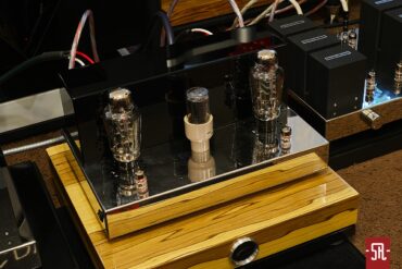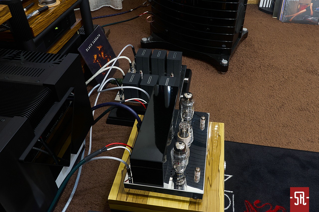 Gdy przyszła kolej na końcówkę mocy, pierwszą informacją jest wspomnienie o wykorzystaniu nieco innej rozmiarowo obudowy. Nadal w formie platformy, jednak raczej szerszej, niż głębszej, z inaczej rozplanowanym pokryciem lampami i transformatorami na jej górnej powierzchni. Pierwsze w skład których wchodzą kultowe 300B, stoją w pierwszym rzędzie, a za nimi w jednym zajmującym całą szerokość obudowy pojemniku ukryto trafa. Jeśli chodzi o pozwalający na aplikację wzmacniacza w zastany tor pakiet przyłączy, ten tropem przedwzmacniacza znajduje się także w tylnej części dachu skrzynki. Na zdjęciach widać, że znajdziemy tam gniazdo zasilania, bezpiecznikowe, jedno wejście liniowe RCA oraz terminale kolumnowe WBT. To wszystko? Nic z tych rzeczy. Ja jedynie przybliżyłem ogólny wygląd, by podobnie do testu Step-Up MC po zapoznaniu się z odezwą producenta, w której unika uprawiania monologu z pobożnymi życzeniami, kolejny raz wkleić jego szczegółowy opis.